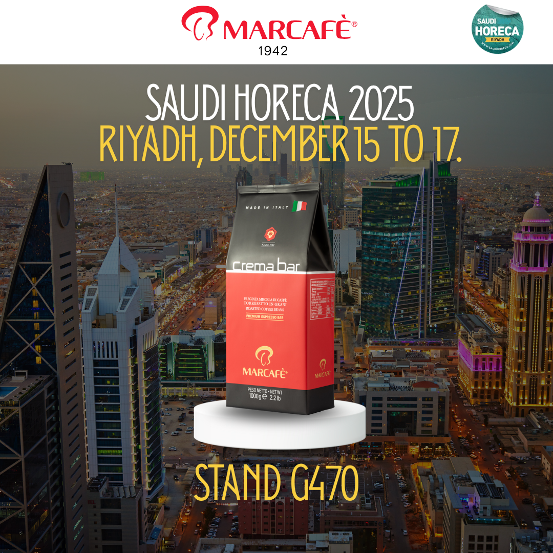 Marcafè parteciperà a Saudi Horeca 2025, la principale fiera del food & beverage in Arabia Saudita. È un appuntamento importante per incontrare operatori del canale Ho.Re.Ca. e conoscere le esigenze di un mercato in forte crescita.